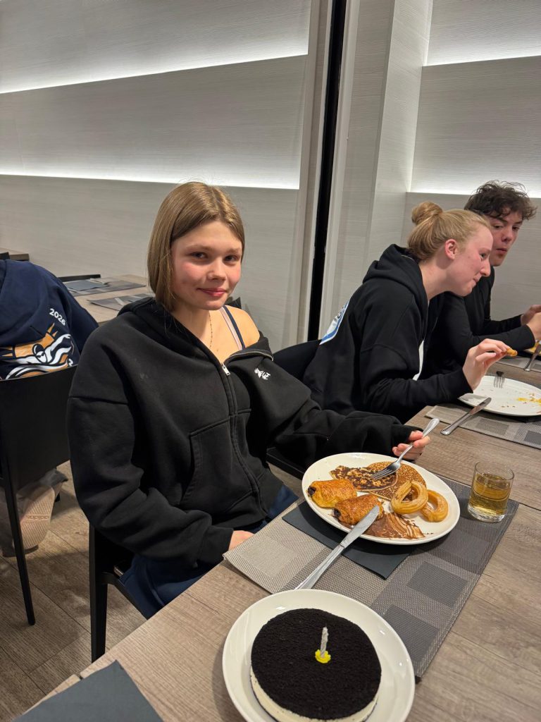 Als das geschafft war, ging es zurück ans Hotel und dann hieß es letzte Snacks für die Fahrt kaufen und dann ab in den Bus und zurück nach Deutschland, wo die Eltern alle warteten bis wir zurückkommen. Kurz nach 12 ging es los in Richtung Deutschland. Die Stimmung war entspannt. Auf der Fahrt wurde gelacht, gespielt, gegessen und ganz viel geschlafen. Auch wenn es nicht jeder zugeben wird, eine Woche Trainingslager mit 2x Training täglich ist anstrengend für jeden, sowohl für uns als Schwimmer als auch für die Trainer.