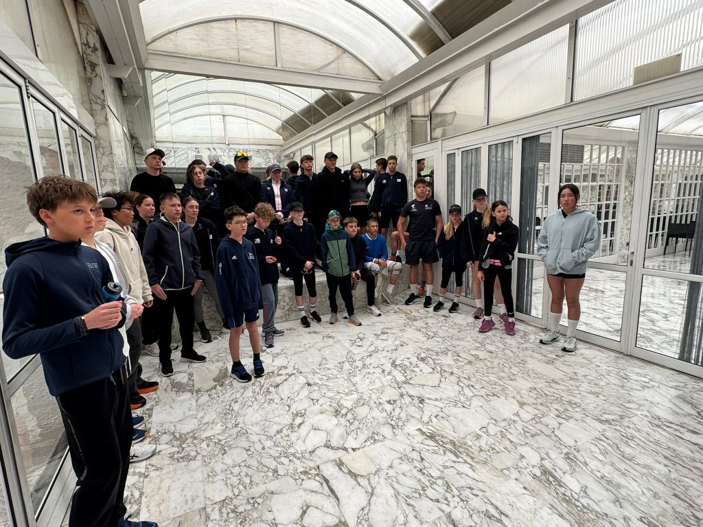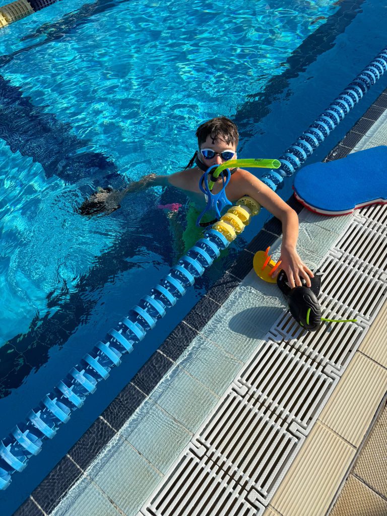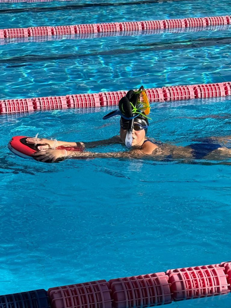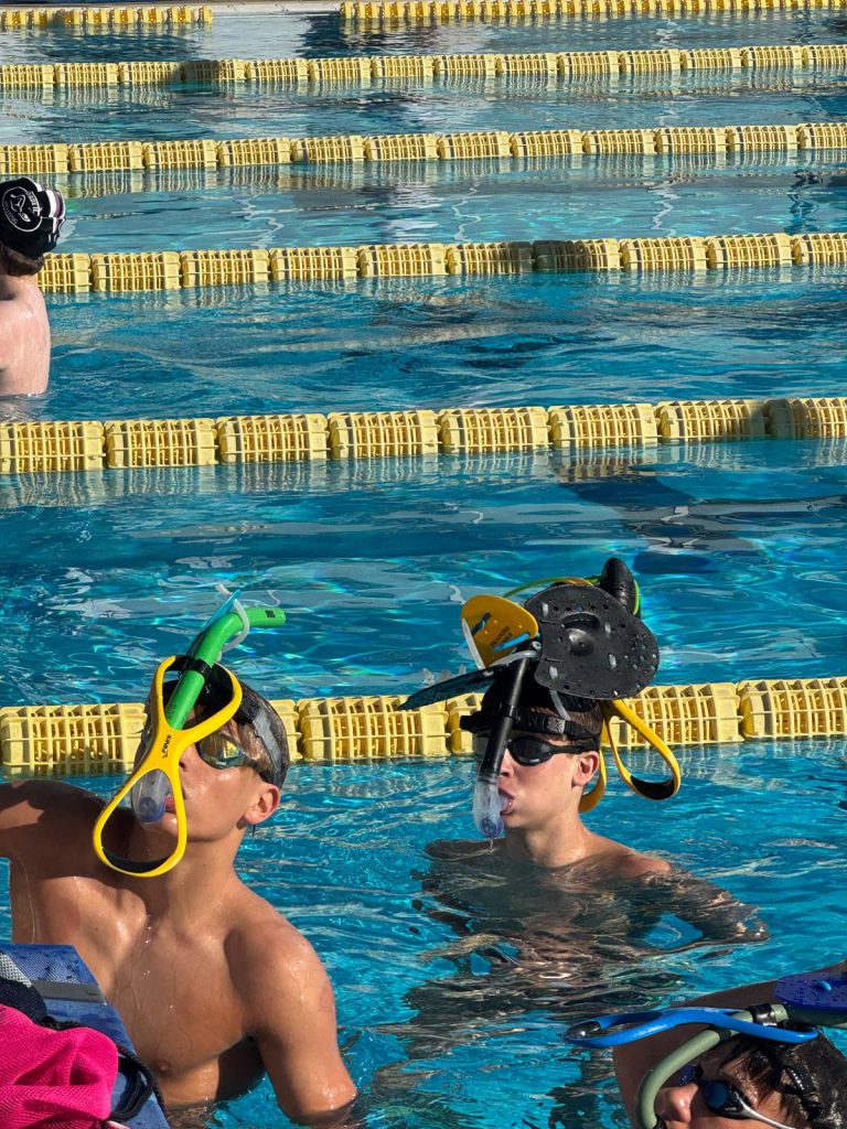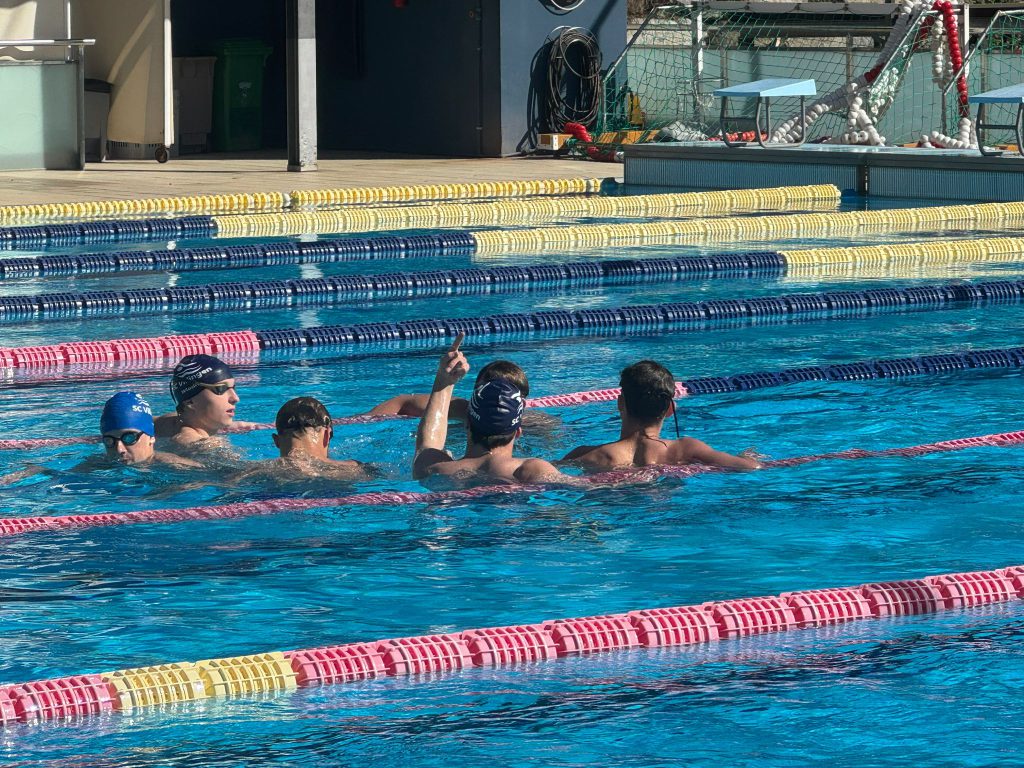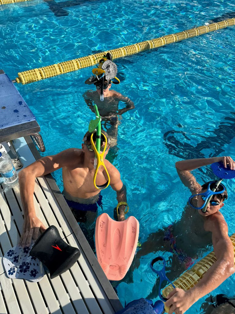 Nach dem Frühstück ging es direkt weiter zur Athletik. Oben angekommen wurden fleißig Übungen gemacht, bevor es dann ohne große Pause ins Wasser ging. Dort stand ein altbekannter Programmpunkt an: der Test, den wir schon zu Beginn des Trainingslagers geschwommen sind. Damals schon anstrengend – diesmal nicht weniger. Trotzdem haben sich alle durchgebissen, auch wenn man dem ein oder anderen angesehen hat, dass die Arme langsam schwer wurden.