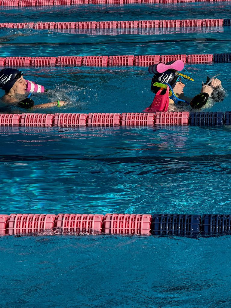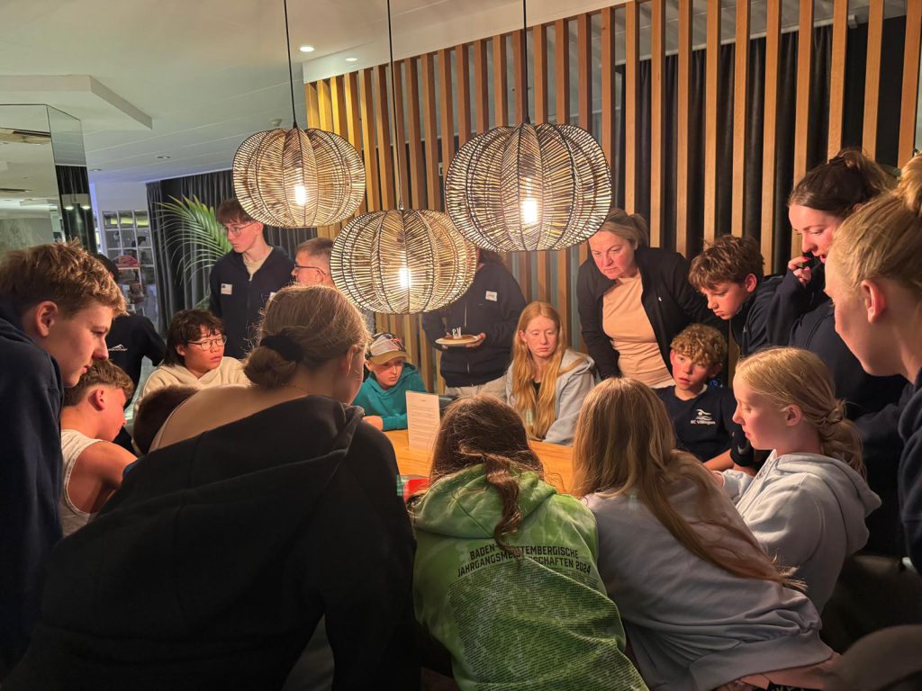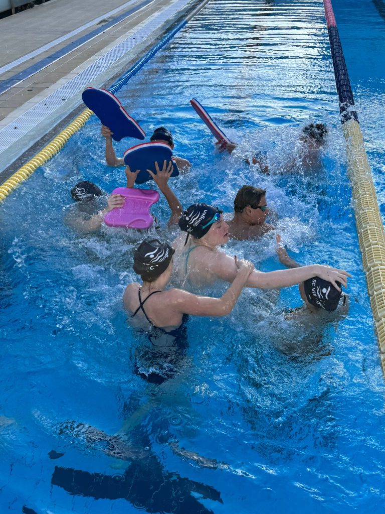 Danach haben wir noch ein paar Staffeln gemacht. In Teams schwimmen und sich gegenseitig unterstützen, egal ob klein oder groß.