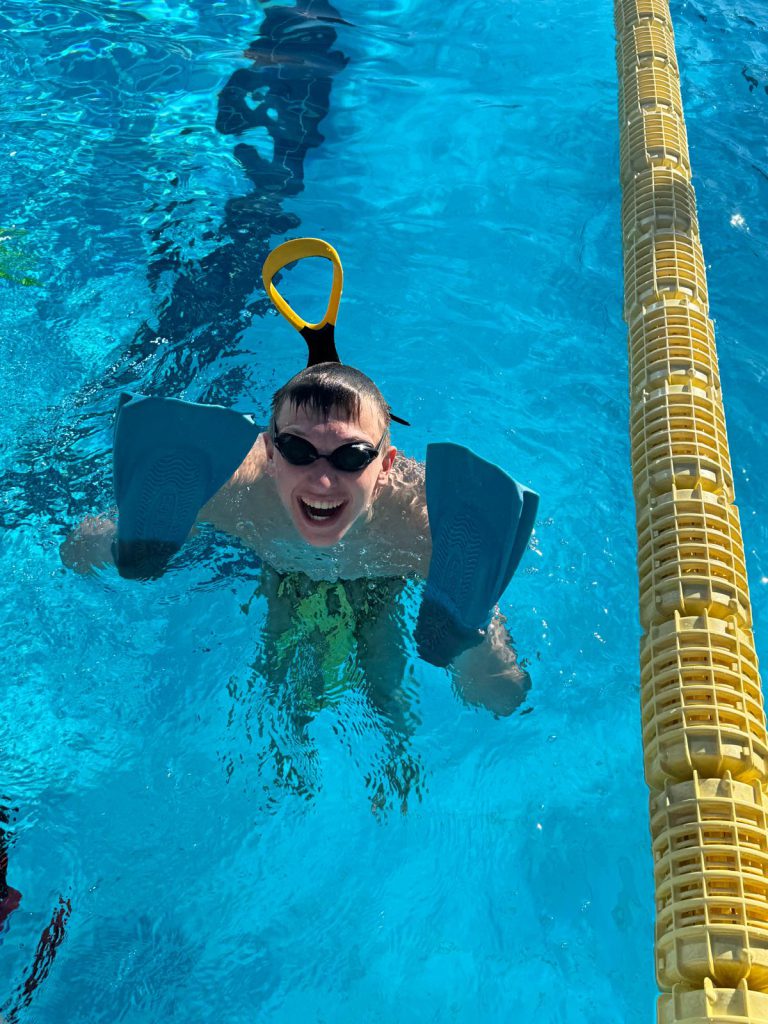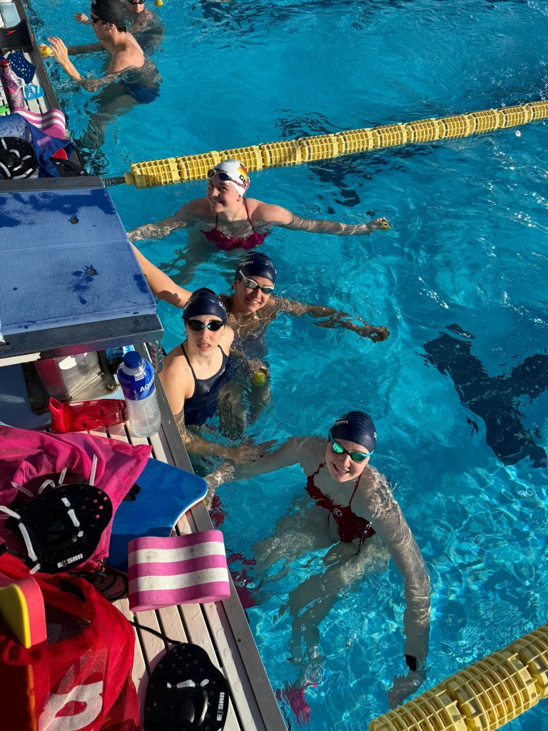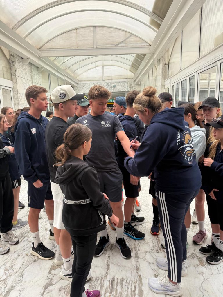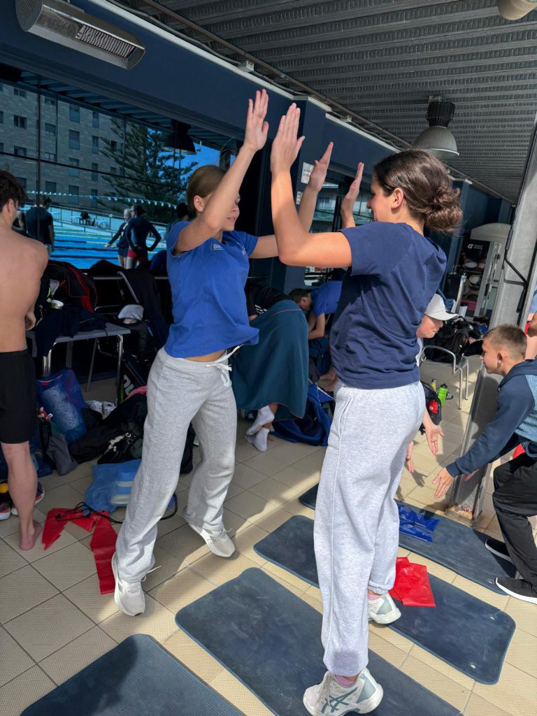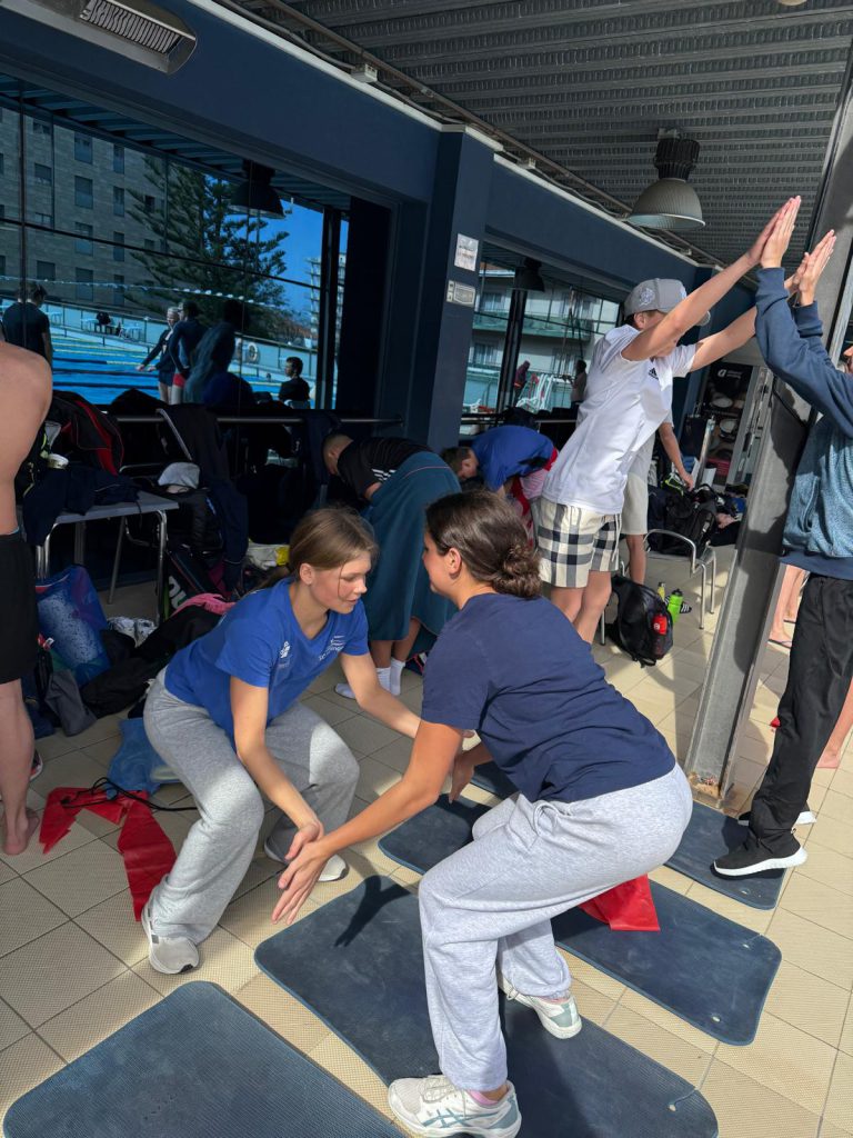 Am Mittag wurde die Gruppe dann aufgeteilt: Die Größeren gingen ins Gym und durften dort weiter an ihrer Form arbeiten, während die Jüngeren sich am Beckenrand aufwärmten. Danach ging es für alle wieder ins Wasser. Ein Highlight für viele: Starts üben.