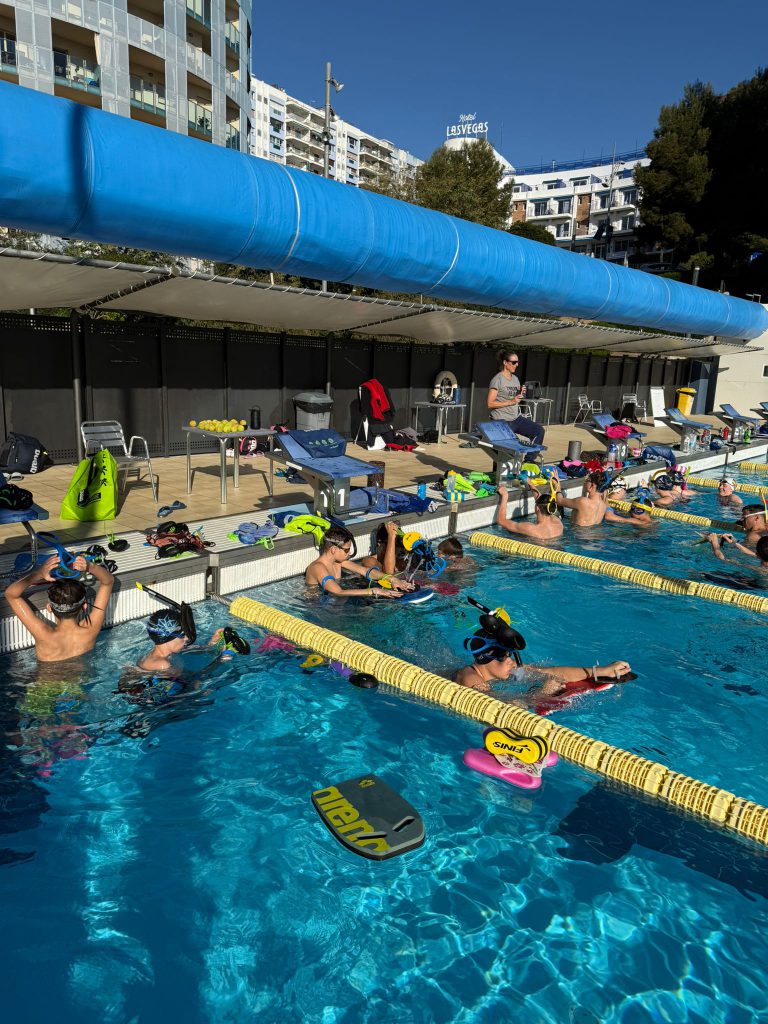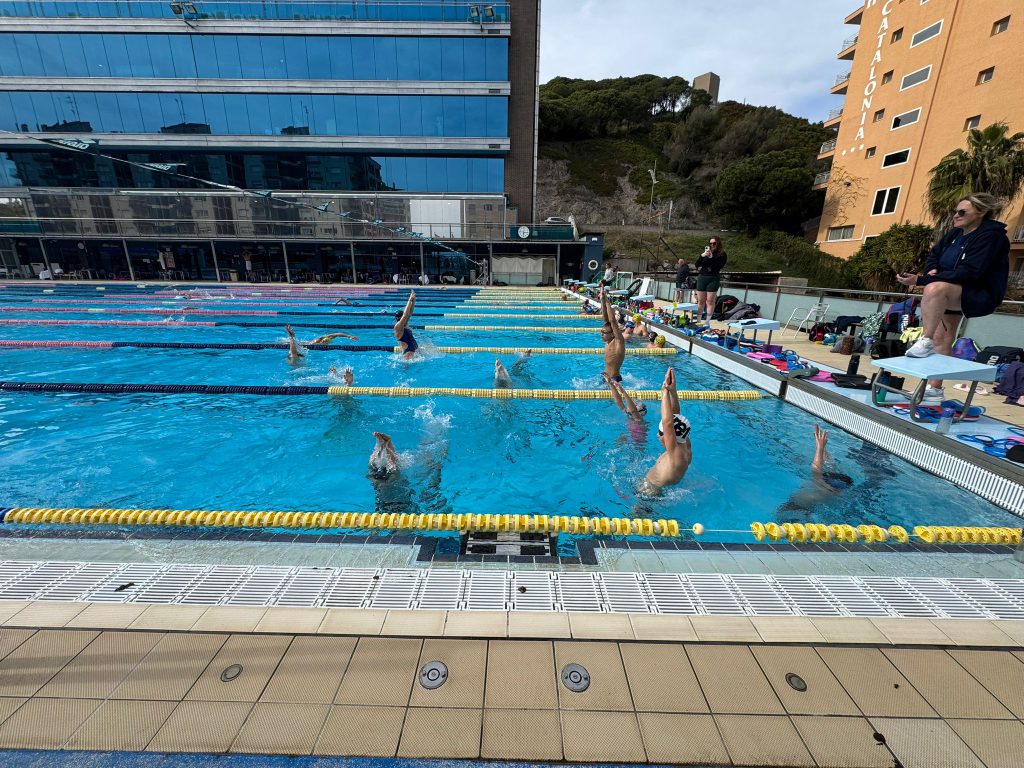 Der zweite Tag im Trainingslager in Calella begann mit einem guten Frühstück, das allen die nötige Energie für die bevorstehenden Einheiten gab. Gut gestärkt ging es anschließend direkt zur ersten Trainingseinheit des Tages. Nach einem kurzen Aufwärmen sprangen alle motiviert ins Wasser, denn gleich zu Beginn stand der erste Test des Trainingslagers an.