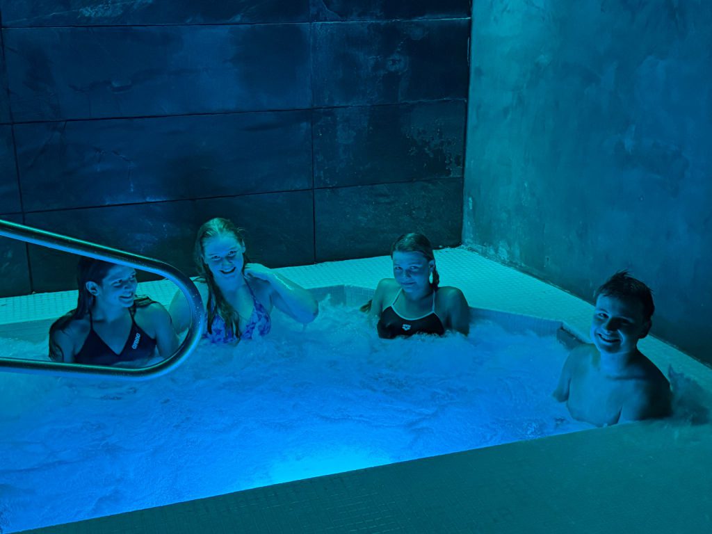 Nach der zweiten Einheit ging es zurück ins Hotel zum Abendessen. Die Großen hatten danach noch die Möglichkeit, im Spa zu entspannen. „Entspannen“ ist dabei allerdings relativ – so ruhig, wie man sich das vielleicht vorstellt, lief es dann doch nicht immer ab.