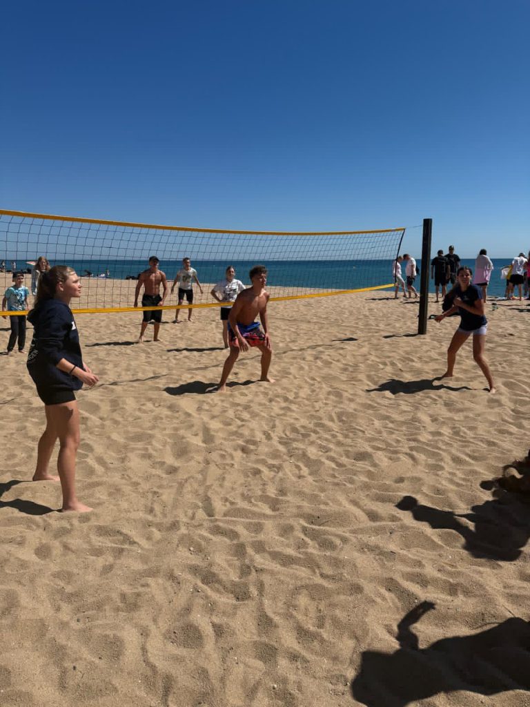 Am Mittag nach dem Mittagessen gingen wir mit vollen Bäuchen zum Strand für das Athletiktraining. Aber davor spielten wir erst einmal Volleyball. Schließlich war doch Zeit fürs Athleltiktraining.