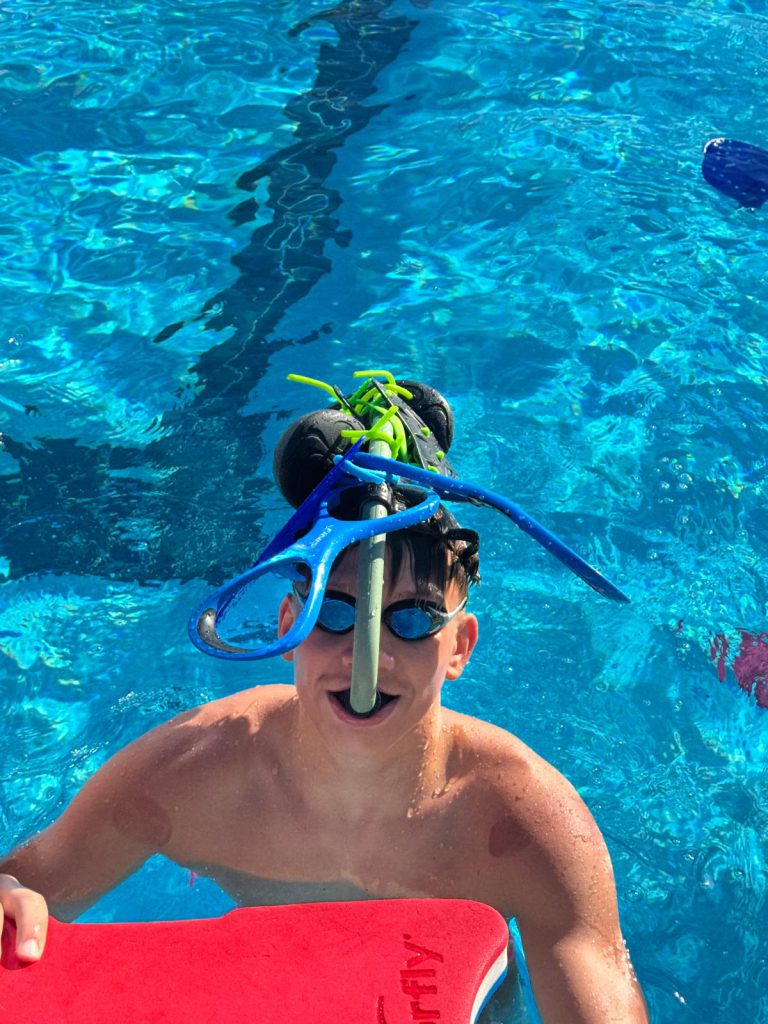 Im ersten Training stand ein Test an, weshalb die Älteren mit Wettkampfhosen geschwommen sind. In der Mittagspause sind wir dann alle zusammen Volleyball spielen gegangen das hat richtig Spaß gemacht und war eine schöne Abwechslung.